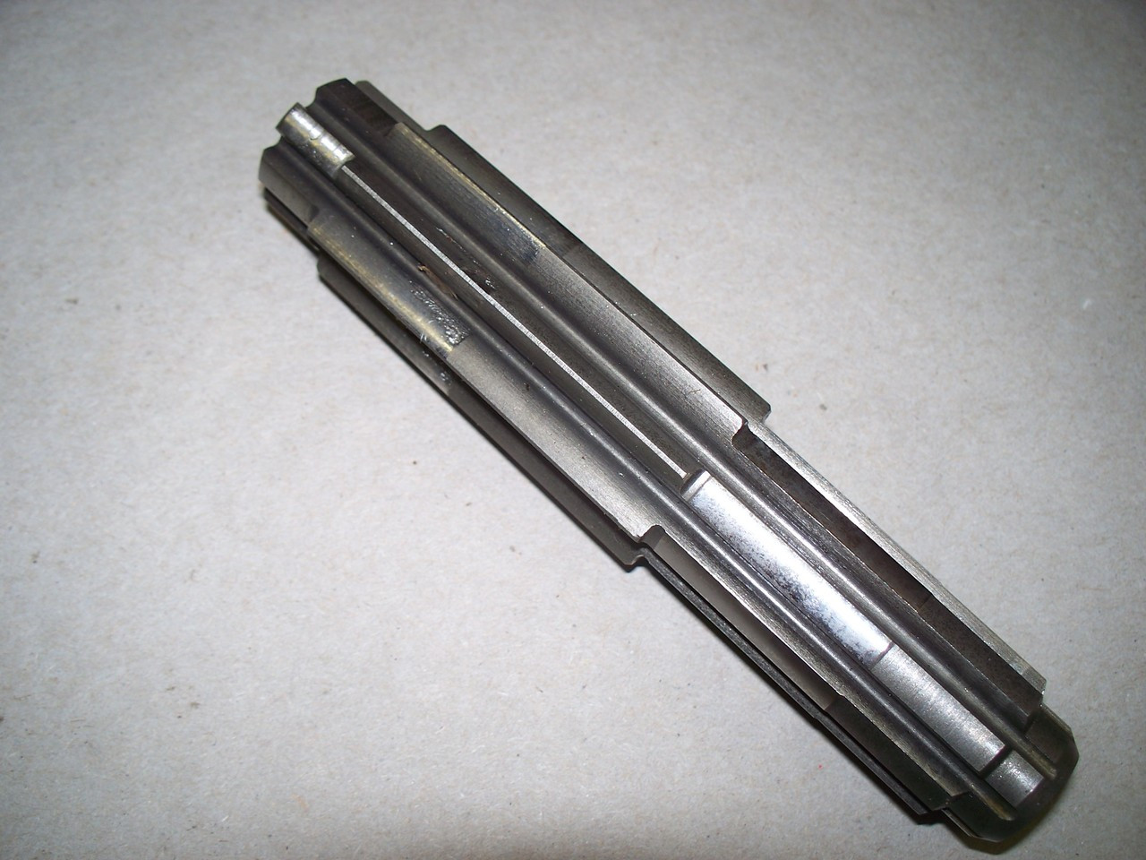 Loading... Please wait...This is a used input gear shaft out of a John Deere 425 garden tractor rear end. This part will also fit a 445 and 455 tractor. I could not find a part number for this input shaft but it fits onto the rear end input gear which the part number of that gear set is AM878401. The shaft appears to be in good shape the splinesdo show a litttle wear as can be seen in the pictures. (26B)